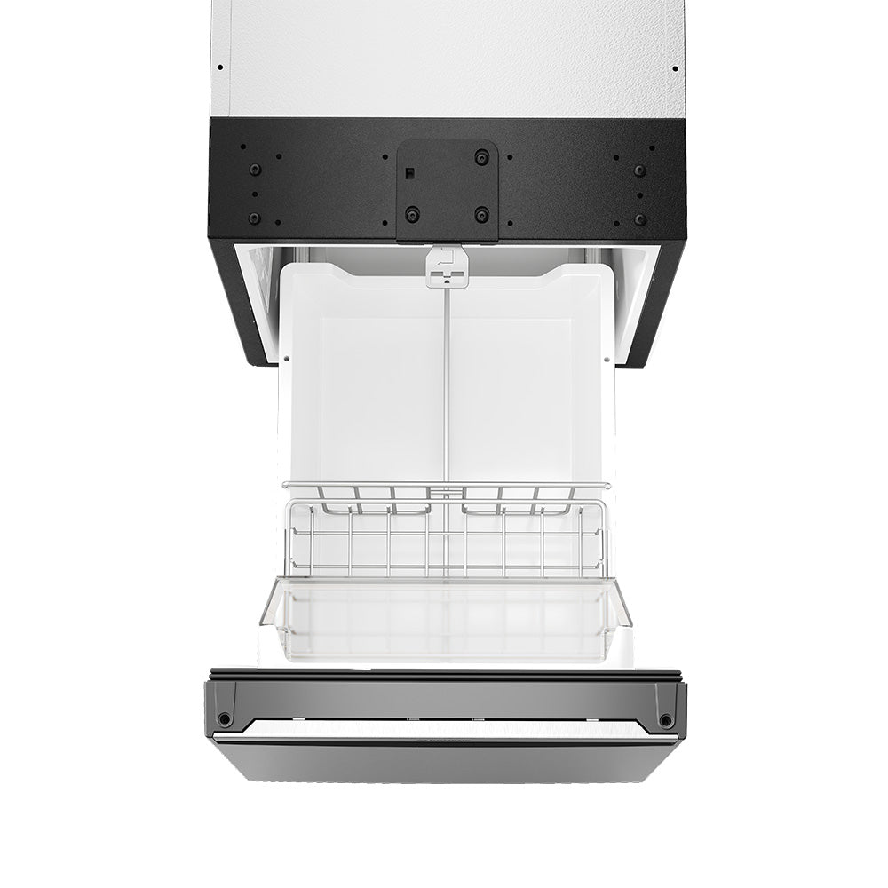 Fresh design, superior energy efficiency: this smart compressor refrigerator provides 44 L of cool storage. Its elegant frameless door, integrating a stainless steel front panel and a convenient full-width handle, opens to a versatile interior. You can easily remove the 4.4 L freezer compartment to use the full cabinet capacity for refrigeration or one-star conservation (*) and keep frozen food for a few days.