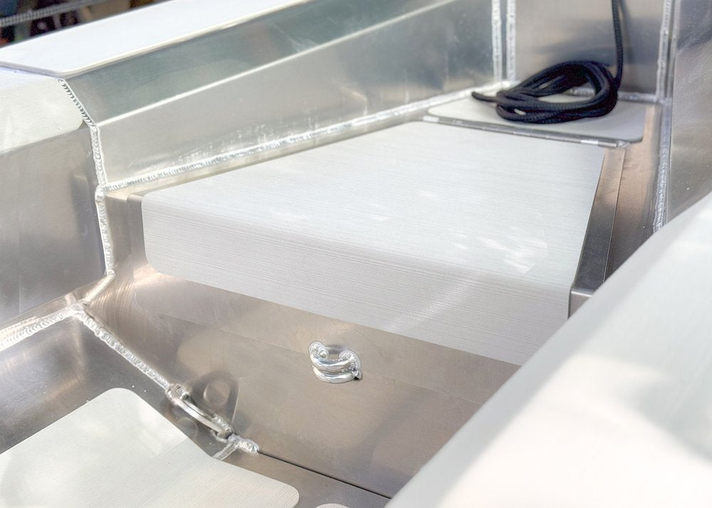 The bow locker is covered by SeaDek so it offers a comfortable place to sit and an easy to use, non-skid step for loading and unloading.
