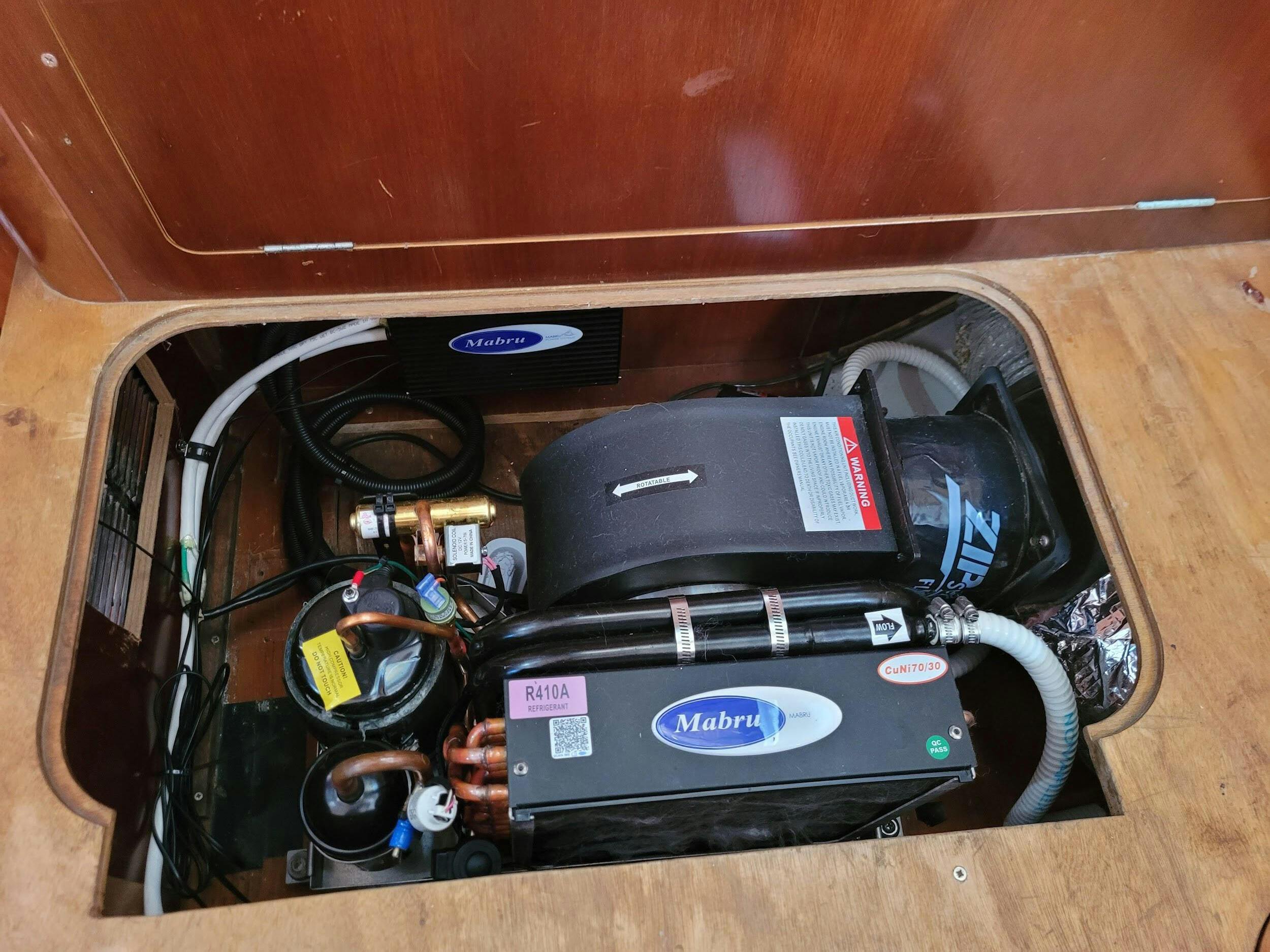 Introducing Mabru's new 17,000 BTU International Voltage 115/230v self-contained SC17VI, utilizing a Variable Frequency Drive (VFD) On-demand, a VFD adjusts the speed of an HVAC fan and variable speed compressor, saving energy and extending the life of the team. A VFD responds to a signal from a controller, allowing equipment to run at the power required to meet the demand for heating and cooling. This replaces the older version of conventional AC with cranking amp spikes, eliminating on / off starts at the compressor. Ideal for battery off grid solar operation, best marine heat pump ever.