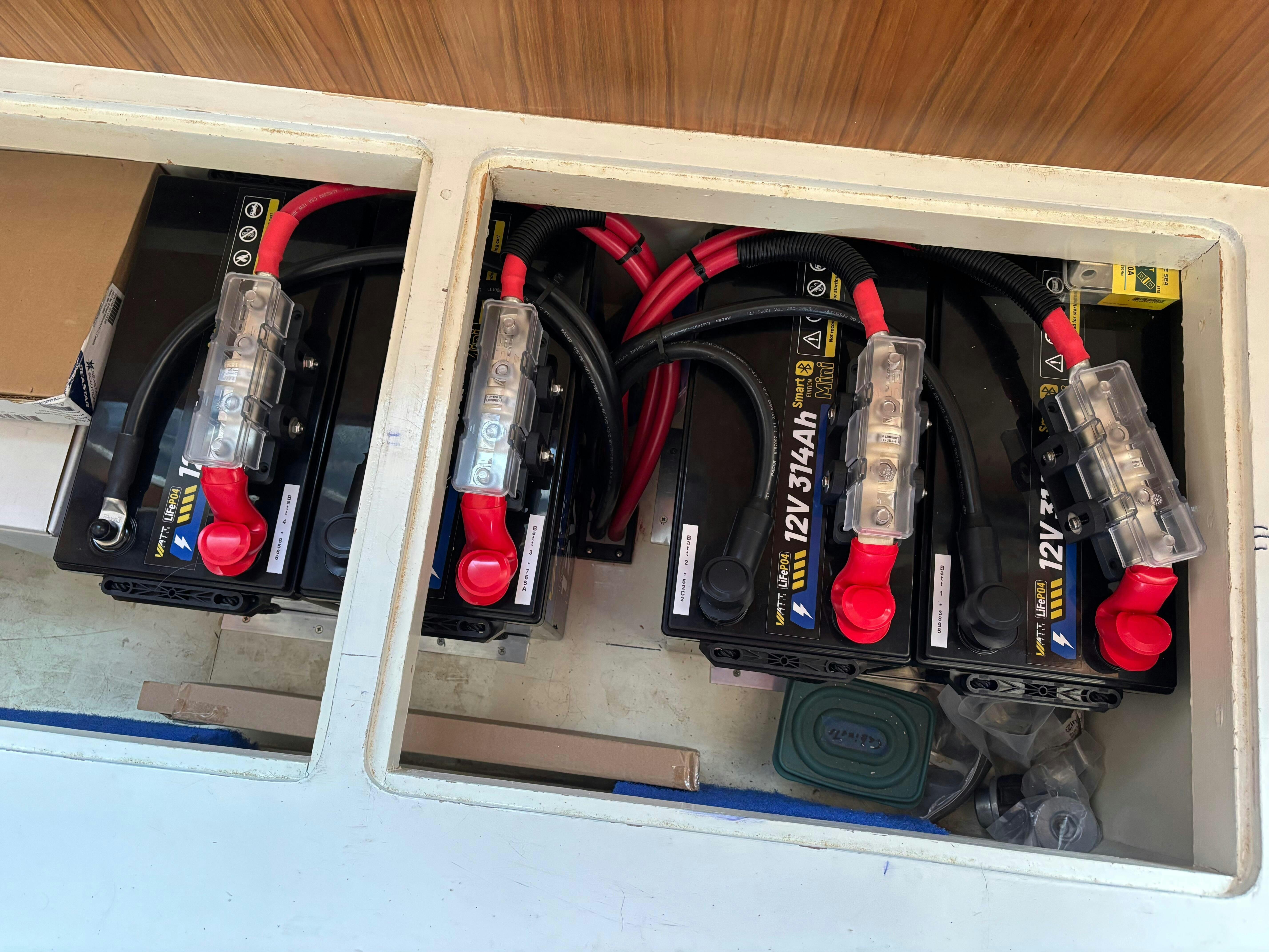 Phase 1 – Remove 9KW generator, install 30KW LifePO4 battery system, inverter chargers, battery chargers, etc. wired for worldwide shore power capability to ABYC standards. Installation made possible with guidance and support from Andre Cormier and The Yacht Rigger.